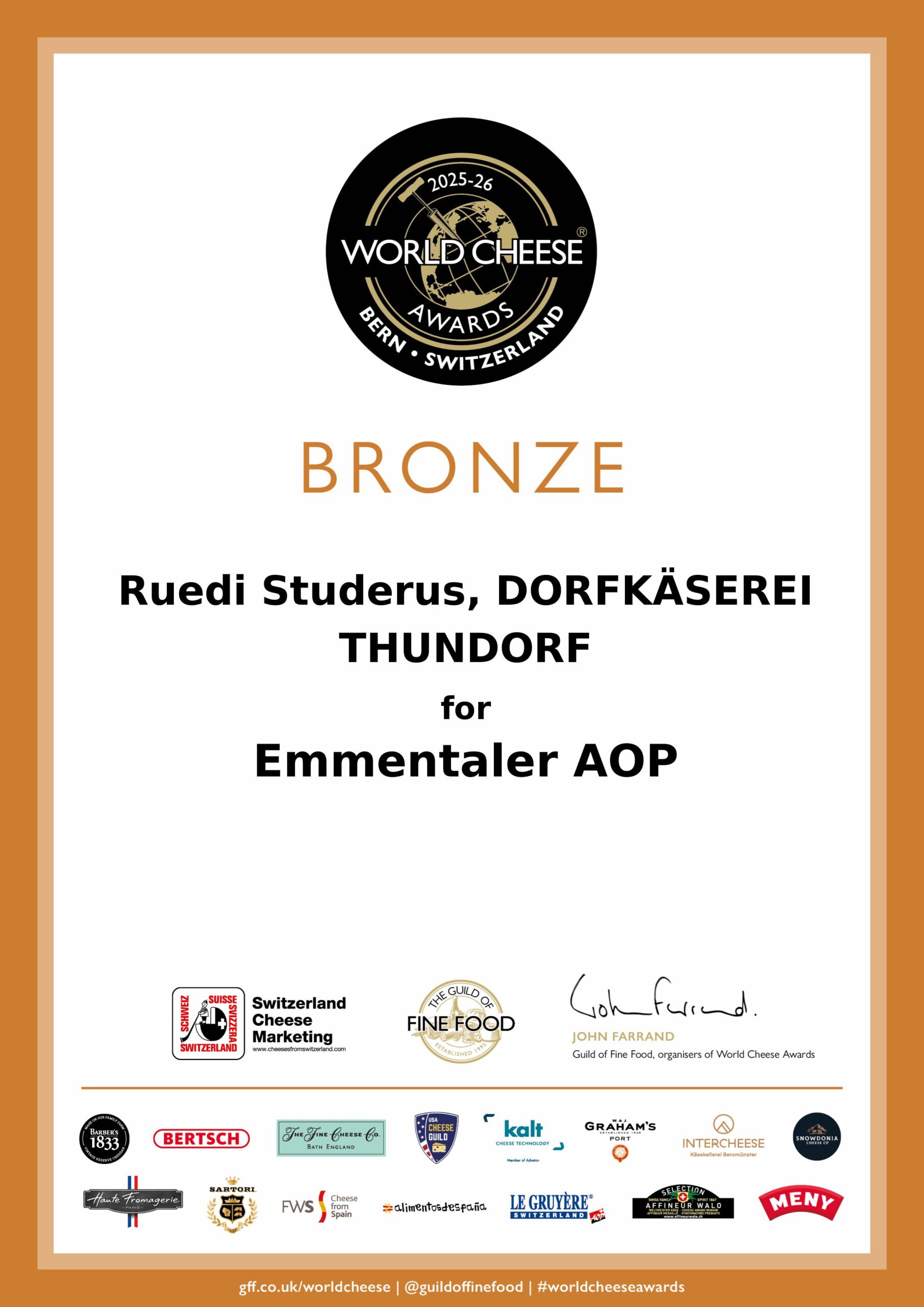 Unsere tägliche Arbeit hat sich eindrucksvoll ausgezahlt – mit unserem Emmentaler AOP sichern wir uns die Bronzemedaille!